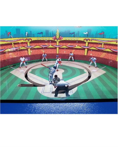 ALL STAR BASEBALL offers the traditional feel of the ballpark with a perfectly manicured infield and a lush green outfield. The player’s uniforms and positions take us right to the front row of the action. The only things missing are the popcorn and hot dogs. The cabinet art reminds us that baseball is the American pastime with its red, white and blue design. Fans of all ages will flock to the turnstiles to play this game.