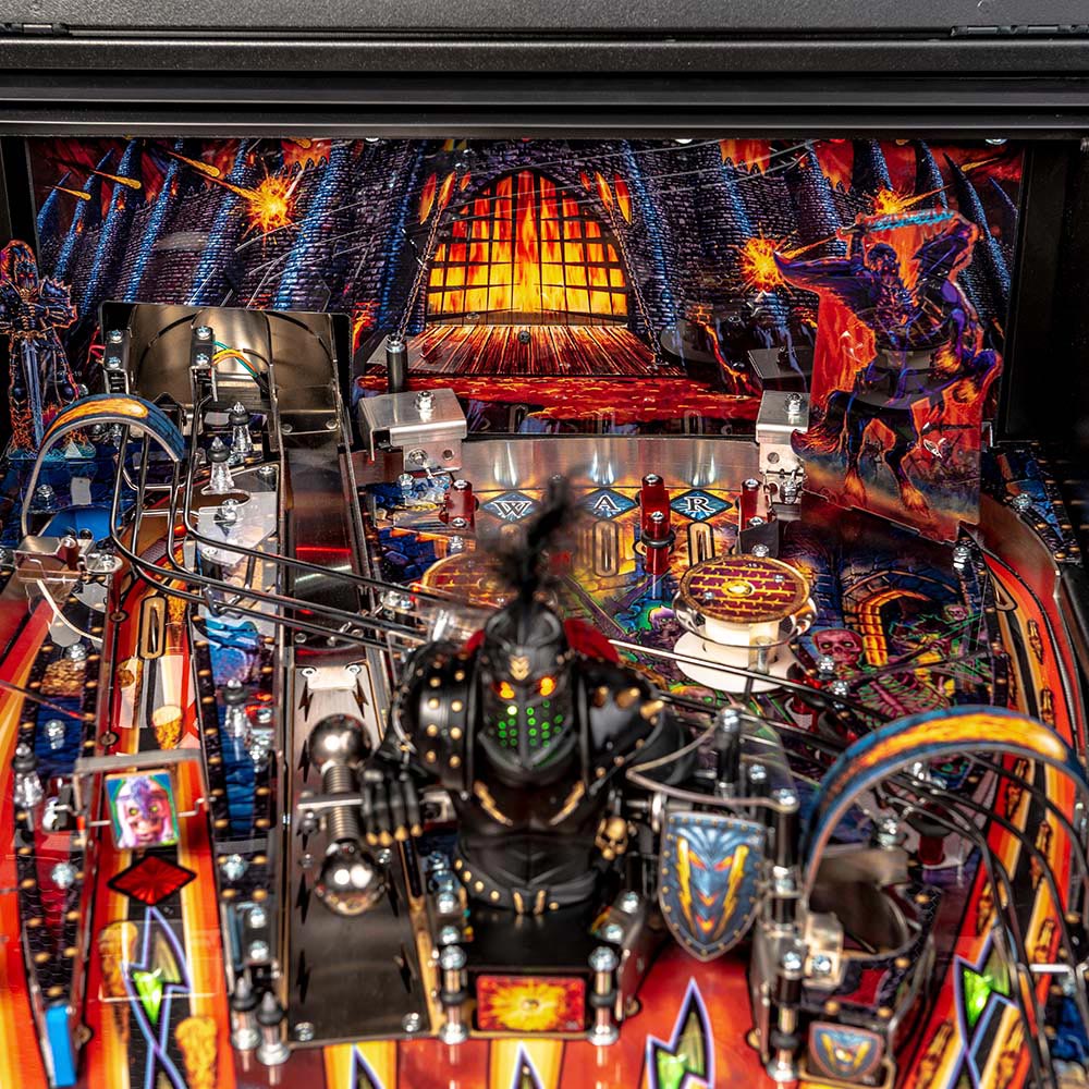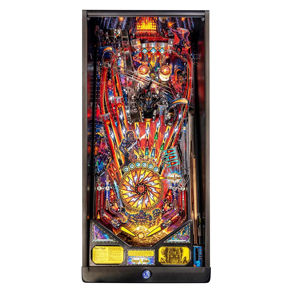The Black Knight is back and better than ever! Taking everything you loved about the originals and infusing it with today’s technology, the features and game play are unrivaled. Designed by the original Black Knight designer, Steve Richie, this is the table pinball fans have been waiting for! Eye-popping artwork surrounds the crystal clear LCD screen that displays all original animation bringing to life the Knight, his skeleton army, his evil allies and more! With playfield features like a spinning flail, an upper playfield (LE and Premium) and a Magna save, this is a totally new Black Knight but with all the charm of the originals. Retro play mode lets you play it like the original games, even using the LCD to display early pinball numeric-style scoring. Taking a great game and making it even better, this is sure to become an instant classic. Order today!