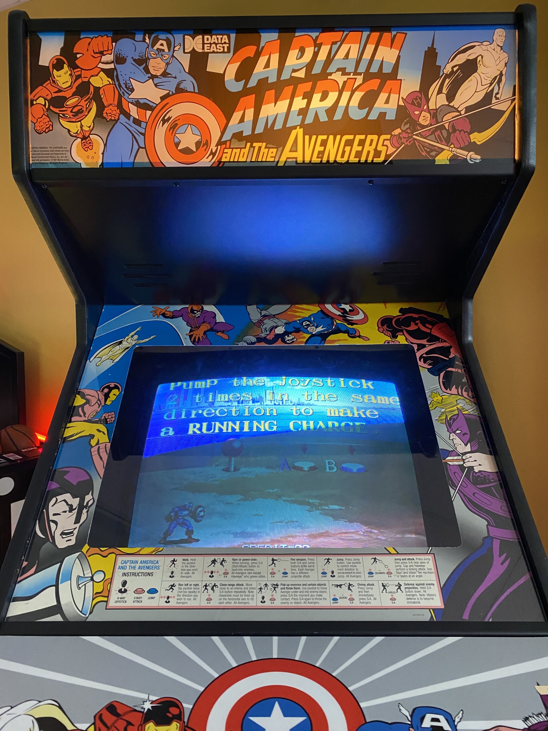 Hard to find 4 player Data East Capt America and the Avengers in great condition. The CRT monitor has been rebuilt for additional reliability. Great for multiplayer interaction!
