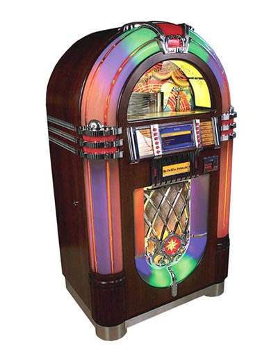 The jukebox sounds marvelous with its 12 inch subwoofer in the rear of the cabinet and multiple mid and high channel speakers. The Digital Bubbler features 250 watts of power and you can hook up surround sound speakers to make your home or office sound great! Loading up the jukebox is a breeze. You simply insert your CD in the hideaway CD drive door and your music is loaded in under 2 minutes!