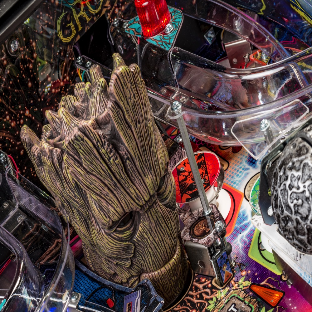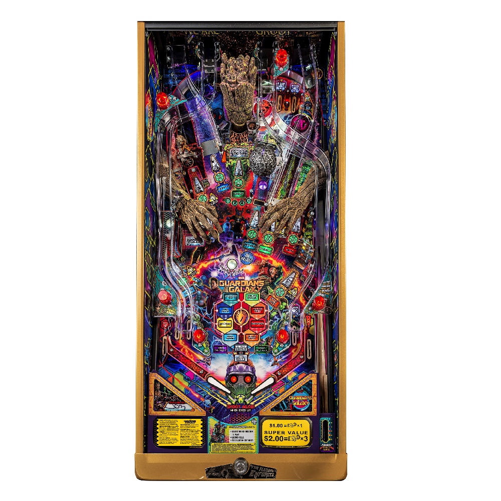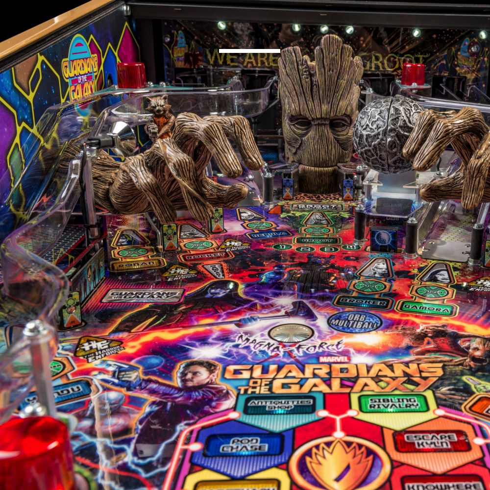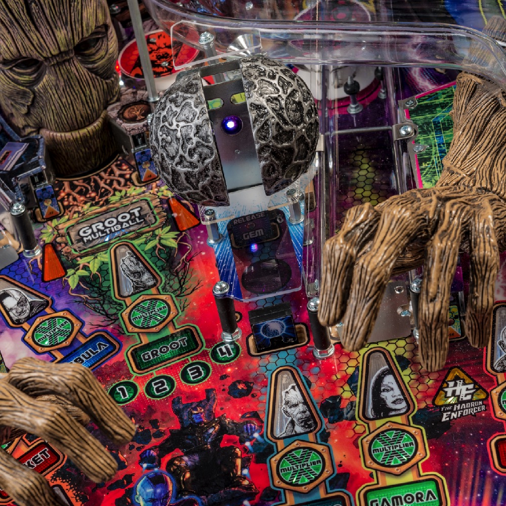 This Guardians of the Galaxy Limited Edition Pinball will immerse players in a dynamic, challenging, and galactic pinball environment where Star-Lord, Rocket, Gamora, Drax the Destroyer, and Groot battle Ronan to stop him from using the Infinity Stone to destroy the galaxy.