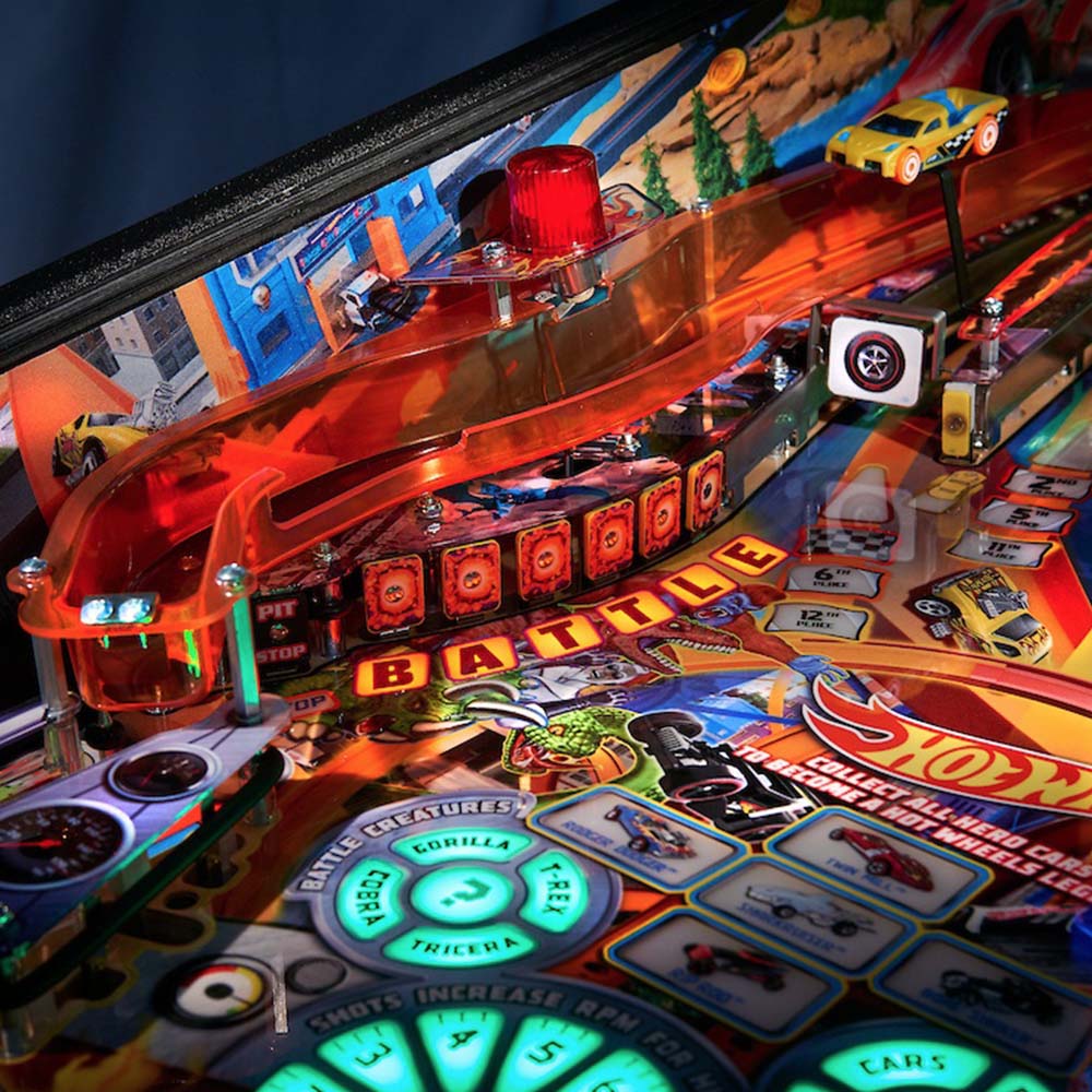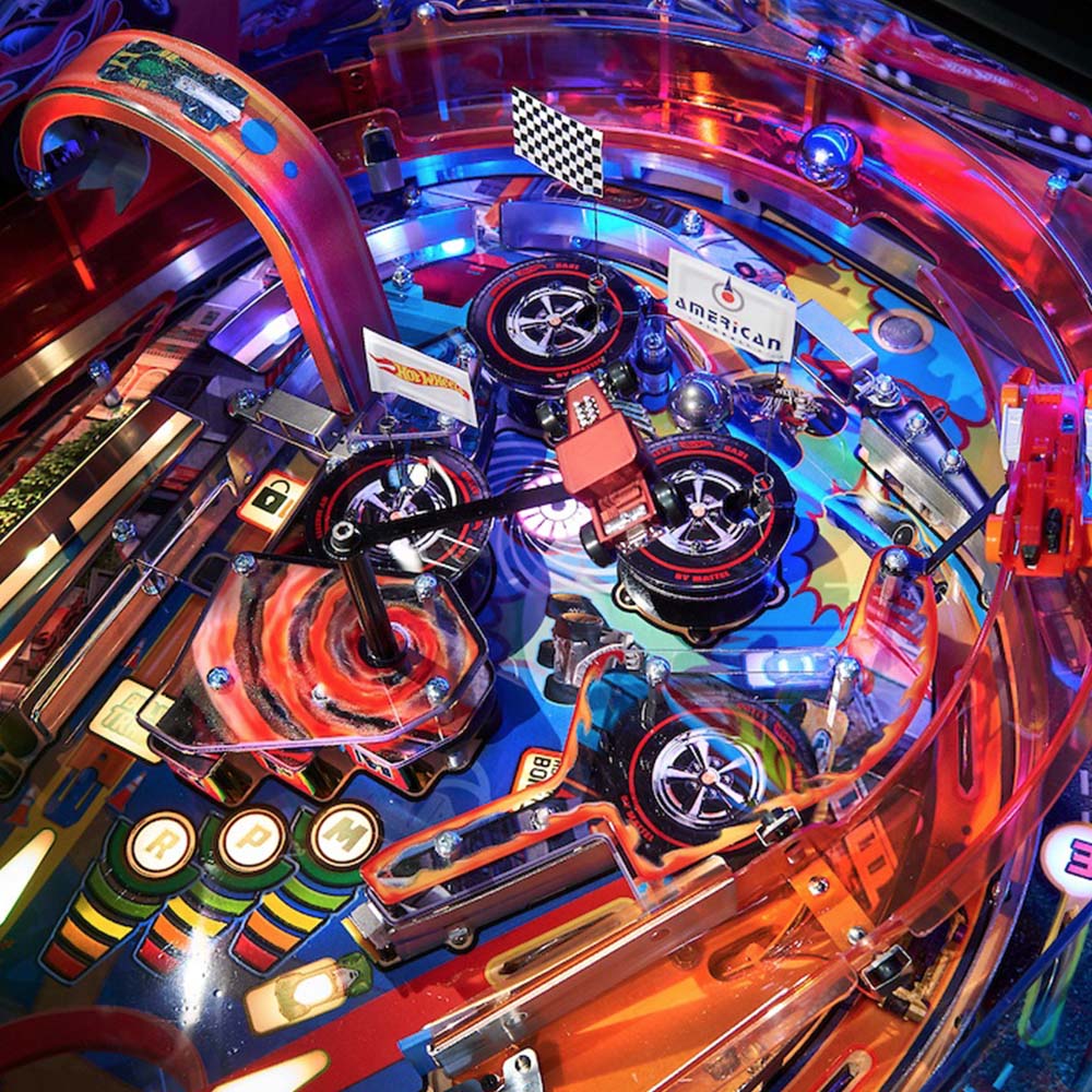 And now American Pinball is proud to present the first officially licensed HOT WHEELS™ pinball machine. The exciting and fast-paced world of HOT WHEELS™ comes to life under glass, featuring a dazzling array of gameplay objectives that will keep players of all ages racing back to play again and again.