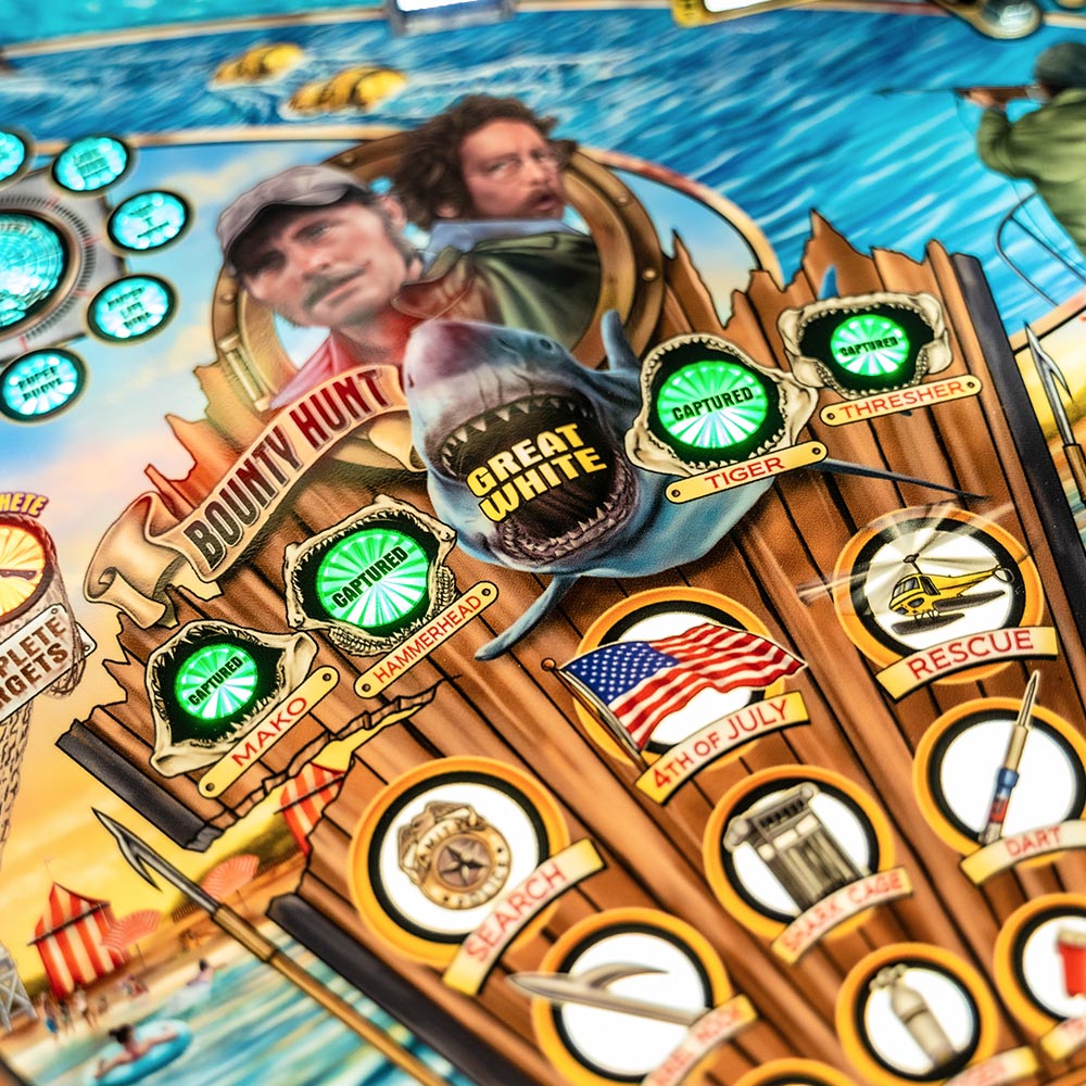 In addition to immersive film and audio assets integrated into pinball action, JAWS includes custom speech by actor Richard Dreyfuss and the iconic movie theme music by John Williams.