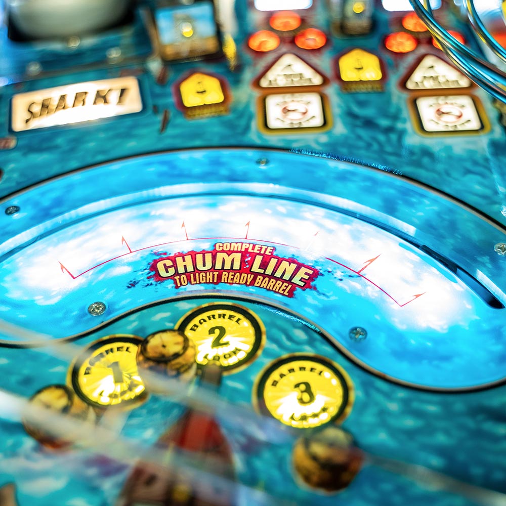 JAWS pinball games include Stern’s award-winning Insider Connected™ system, which enables players to interact with the game and a global network of players in multiple ways. Through Insider Connected, players can track progress, hunt Achievements, take on special JAWS Quests, and work on their lifetime Bounty Hunter rank.