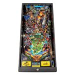 The Pro, Premium, and Limited Edition models also feature a Jungle Adventure Vehicle target in the middle of the playfield that is a spinning Newton Ball. This kinetic target registers direct hits, determines the direction players navigate on the island during gameplay, and lights T. Rex modes. All models include three full sized flippers, four custom ramps, a spinning “Spitter” target, in-lane up/down lock post that sets up critical playfield shots and distinctive hand-drawn art highlighting iconic dinosaurs from the series.