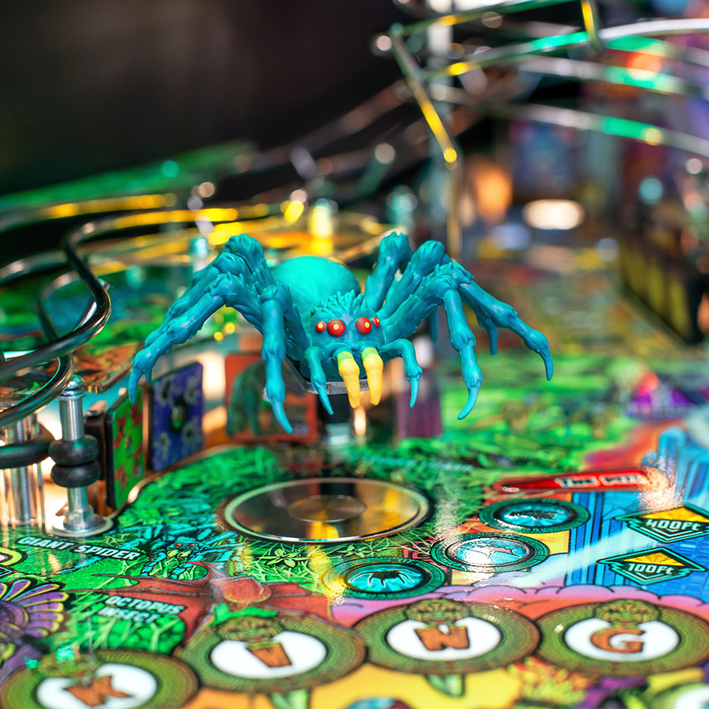 ● Beware of “The Pit” on Terror Island that magnetically grabs the ball and is guarded by a custom sculpted giant spider on the LE and Premium editions