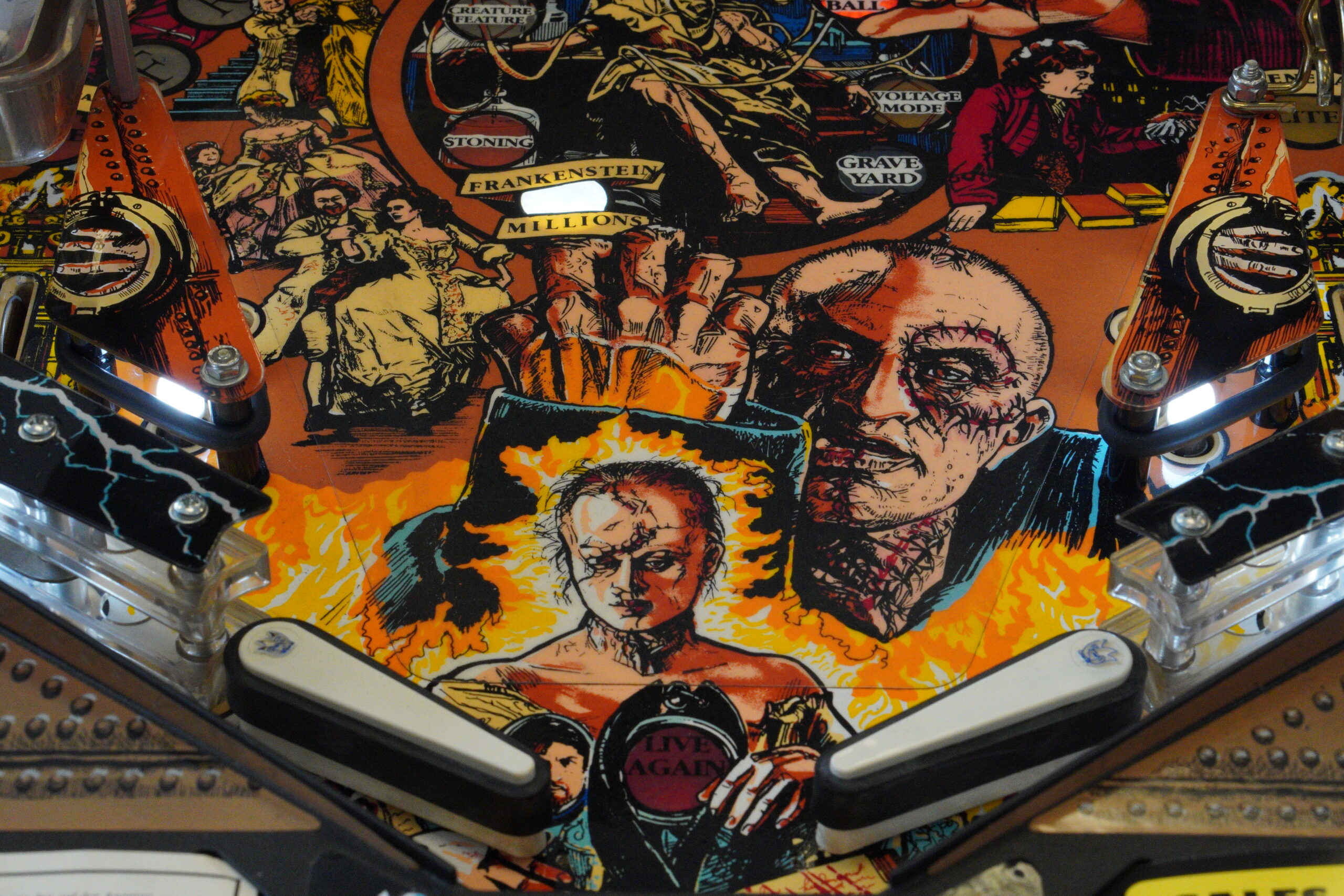 The pinball goes hand in hand with Mary Shellys Frankenstein movie.