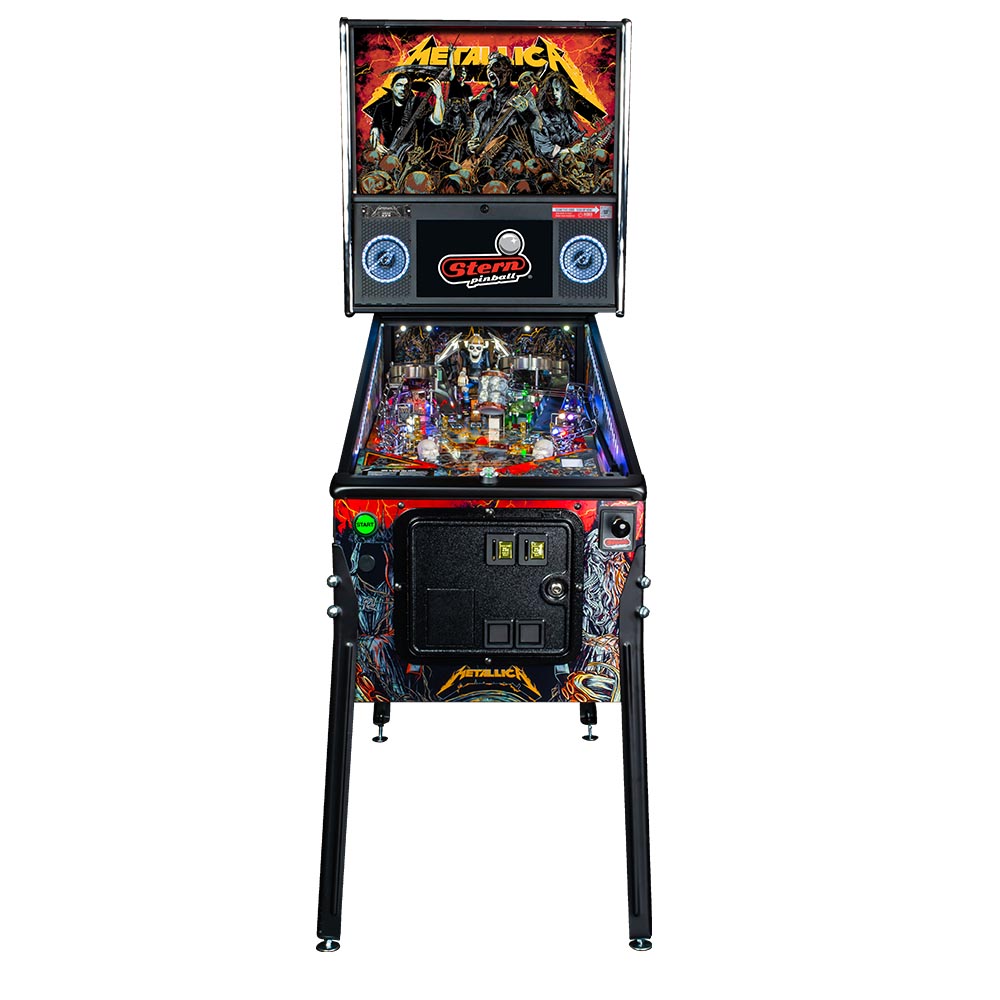 Metallica Remastered is updated with a full-color LCD display featuring all-new animations and live concert video footage. Stern’s modern Spike 2 electronics will power the gameplay experience. Fans will enjoy expanded gameplay and improved presentation with 22 songs (8 more than the original) and expanded gameplay rules. Cabinet improvements include an Expression Lighting system and 2 all-new art packages by Metallica artist Rhys Cooper. Players will experience the same great flow from the original Metallica playfield layout with geometry and mechanical improvements, new versions of gameplay toys, updated mechanical devices, and new UV lighting effects.