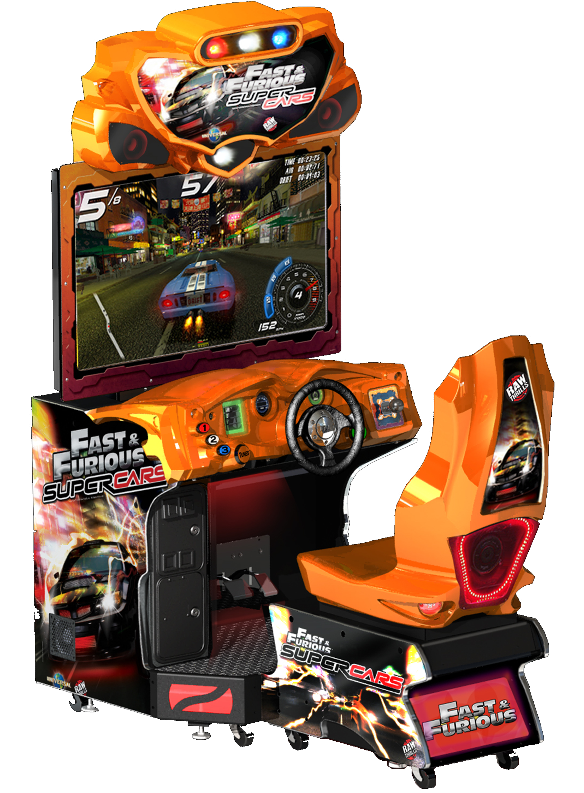 The Fast & Furious™ movie series is all about the merging of technology and muscle. Raw Thrills combines technology and muscle to produce a leading driving game for the world: FAST & FURIOUS™ SUPERCARS™! The classic franchise screams into the new decade with true hi-def resolution, a 1080p display, and a slick attention-grabbing cabinet.