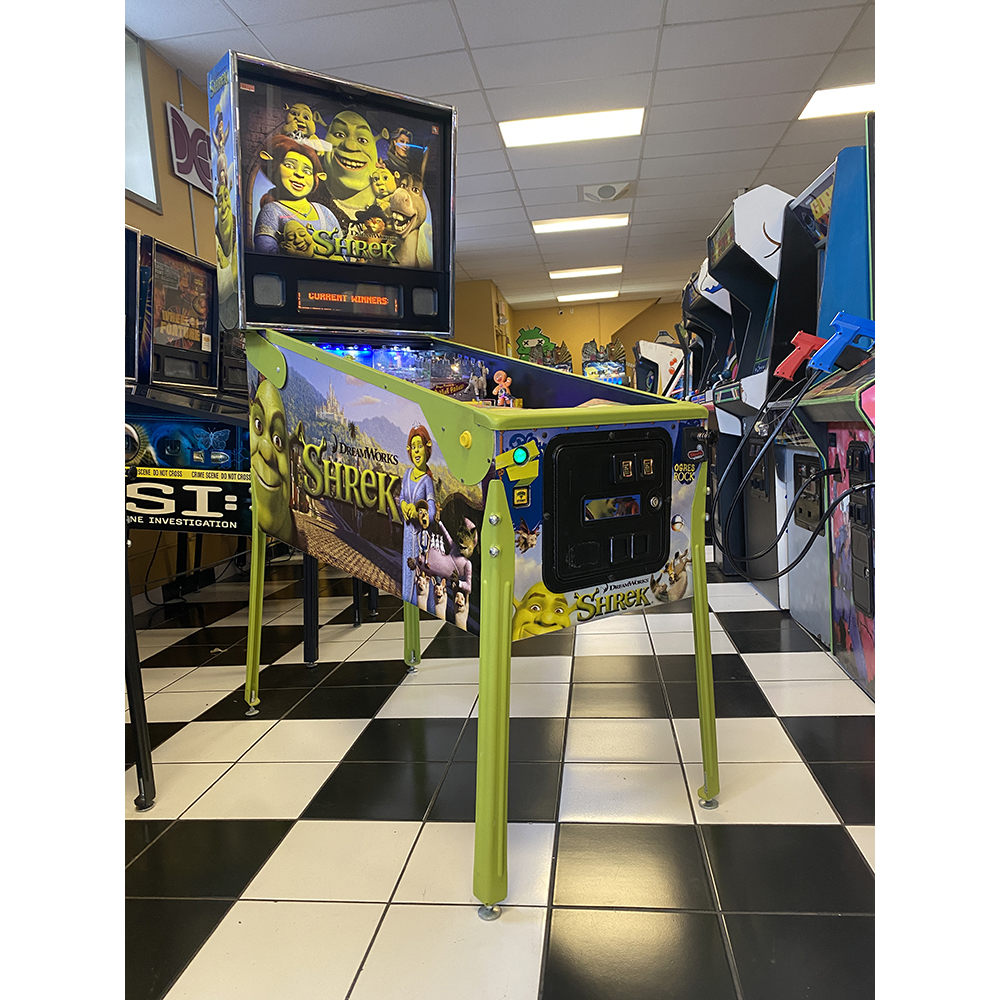 This is a hard to find Home Use Only Shrek pinball. This game was purchased new by one of our customer’s and was recently traded in.