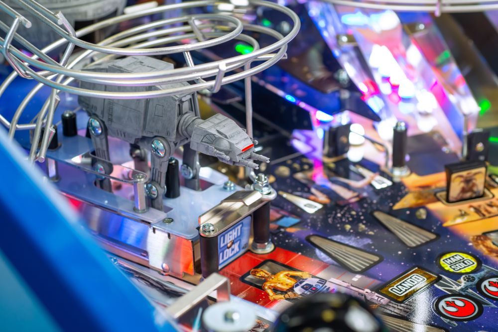 In Stern Pinball’s Star Wars: Fall of the Empire pinball games; players will take part in the adventures that started it all and experience iconic Star Wars-inspired moments through a pinball experience like no other. Players will take down the AT-AT by attaching their snowspeeder’s tow cable and shooting the spiral ramp to send it crashing down, mirroring the breathtaking scene from Star Wars: The Empire Strikes Back. Destroy the Death Star II from Star Wars: Return of the Jedi by lowering shields on the battle station during Death Star Multiball to save the galaxy. Players can also escape from Cloud City when reactivating the Millennium Falcon’s hyperdrive by hitting the center jump ramp to escape to hyperspace. Throughout the pinball experience, players will enter Jabba the Hutt’s Sarlacc Pit, battle stormtroopers, defeat TIE fighters, and even mimic using the Force to save your ball on the journey to defeating the Empire. Feel the power of the dark side as you enjoy special Darth Vader-inspired modes.