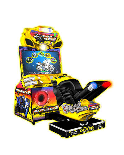 This is the stunning sequel to Raw Thrills original Superbikes. The new cabinet features a huge 42 inch hi def plasma screen and hi intensity LED lights that change color on the dash and throughout the bike! At the start of the game you can choose between tons of bikes with specialty drivers like The Terminator or Tron Light Cycle! Players can choose between various power ups at the beginning of each race as well as tracks like Las Vegas and Dubai. In addition to all the new courses, you can also play all of the courses from the original Superbikes! As you play the game and become familiar with it you will notice shortcuts on each track and with enough experience points you will be able to unlock secret tracks. This game can be linked with up to 8 units for ultimate head to head competition.
