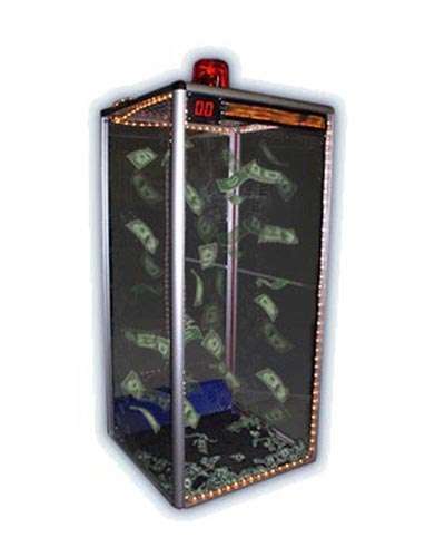 This is the ultimate machine to draw attention at any event! Money machines have been hugely successful at trade shows, bar mitzvahs, birthday parties, schools and church groups, fund raisers, night club promotions and much more.