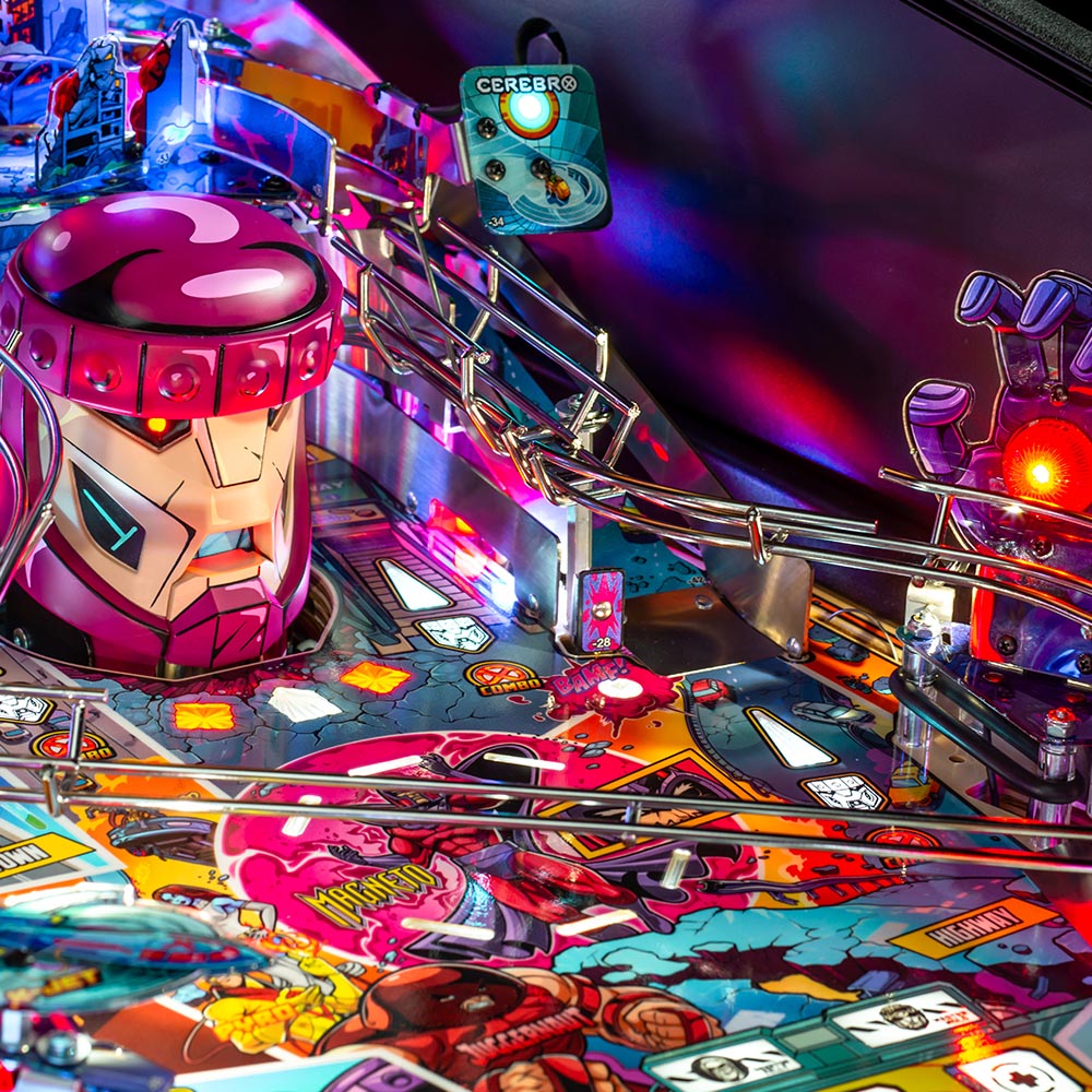 The Uncanny X-Men pinball games include Stern’s ever-expanding Insider Connected™ platform, which enables players to interact with the game and a global network of players in multiple ways. Through Insider Connected, players can track progress, earn game-specific Achievements, and discover new mutants with Cerebro. Every player who logs in with Insider Connected will discover their own mutant power to aid them with online Quests. Original buyers of The Uncanny X-Men pinball will also receive new Uncanny X-Men themed Pro, Premium, and LE owner’s badges after initial registration of their game. Ongoing code updates from Stern Pinball will enhance and extend the player experience.