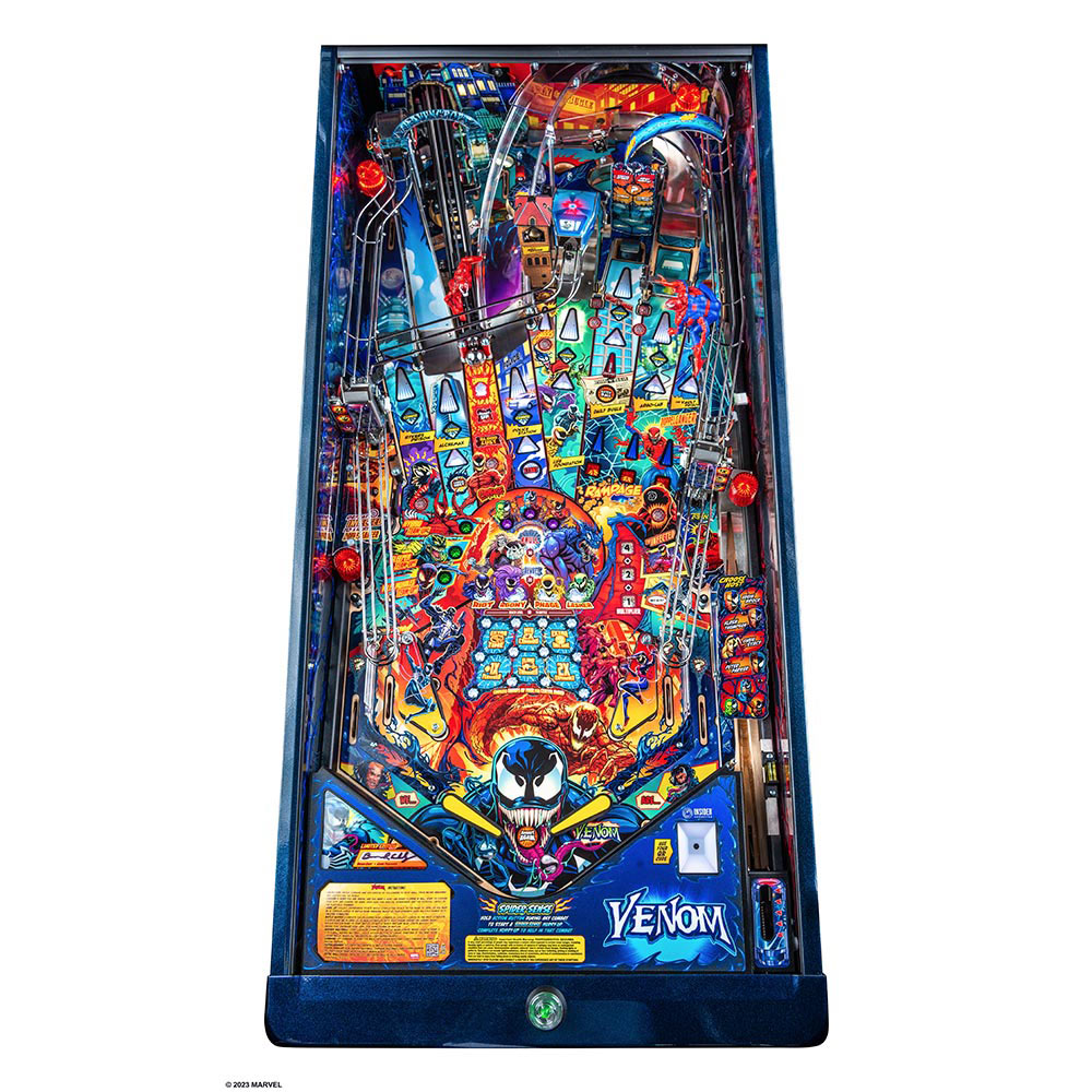 Venom pinball games include Stern’s award-winning Insider Connected™ system, which enables players to interact with the game and a global network of players in a variety of ways. Through Insider Connected, players will be able to save their game progress through connectivity persistence, allowing anyone to become a (anti)hero as you advance through the game to reach the final wizard mode at the end, no matter how many tries it might take.
