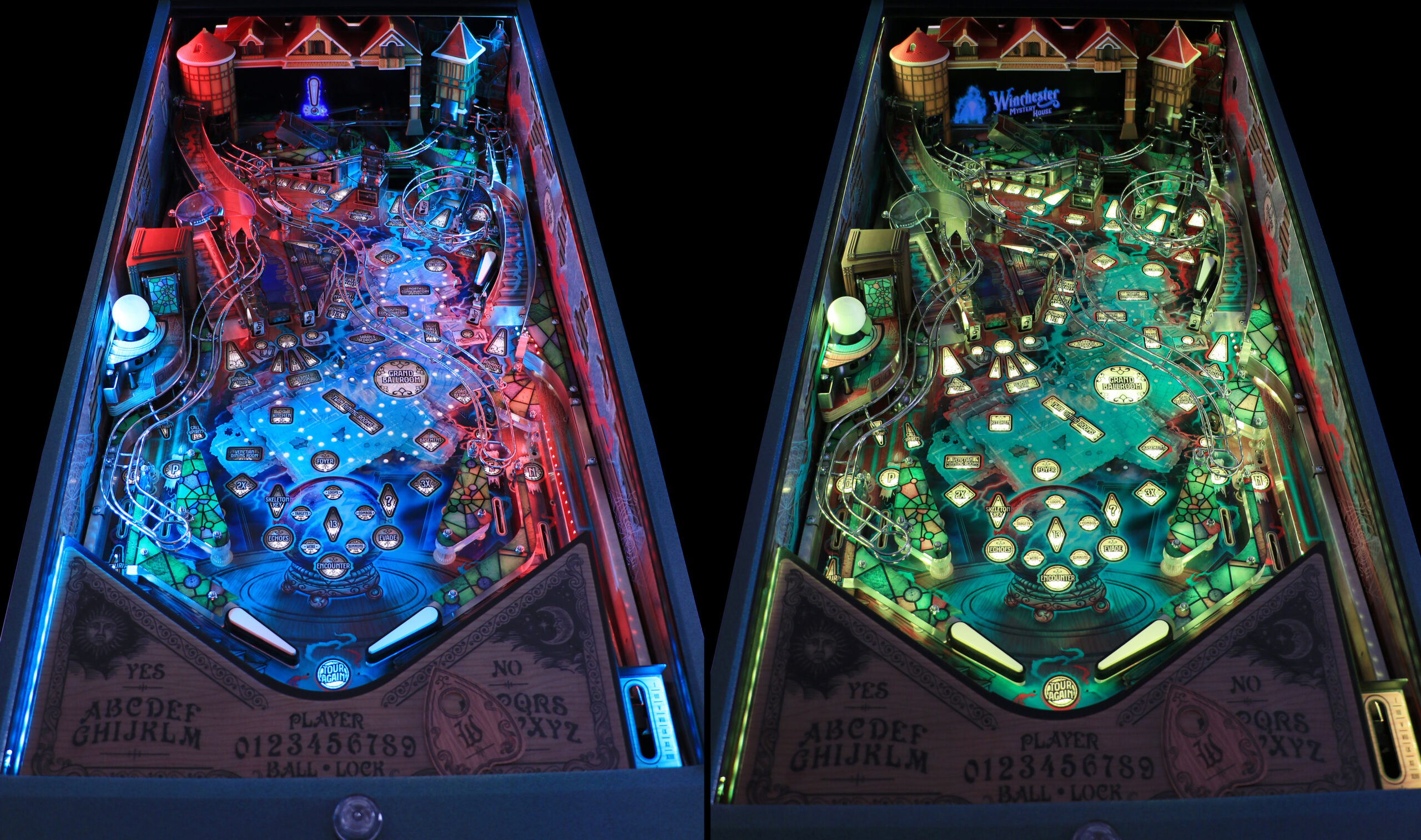 backlit spirit planchette; also featuring a “Return” left outlane kickback